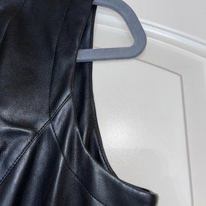 Never been worn, this faux leather dress is comfortable and the skirt flares out to make a cute fashion statement!