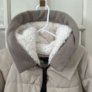 Anna Cai Puffer Coat Sherpa Lined Hood Full Zip Coat Beige Size Large
