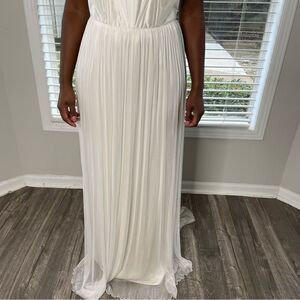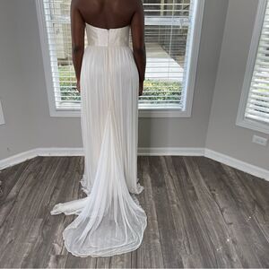 Anna Campbell Boned Strapless bodice silk chiffon corset Wedding Dress w train