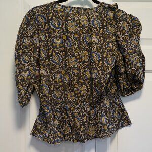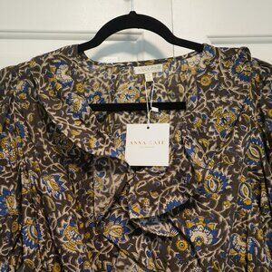 Anna Cate Flowy Top Size M Olive Green and Patterned