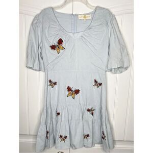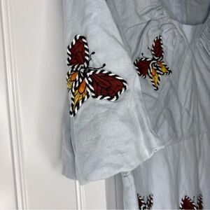 Anna Cate Sloan Blue Linen Butterfly Embroidered Dress Medium Cute Preppy