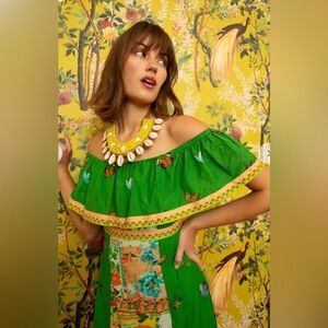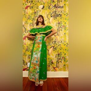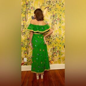 Anna Cate Spencer Maxi Butterfly Green Off-Shoulder Dress Sz S NWT