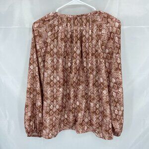 Anna Cate Women S Blouse Snakeskin Print Long Sleeve Oversized Keyhole Tie Neck