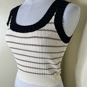 Anna Dani Rib Knit Crop Top OS Cream Black Stripe Scoop Neck Tank Chic New