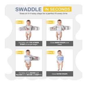 Made with 100% premium cotton and baby-friendly hook-and-loop closures (smooth but strong), Swaddle Strap baby swaddle provides a gentle, cozy wrap to help your infant sleep soundly.