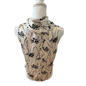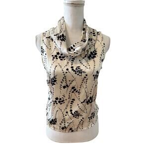 Anna & Frank Silk Cowl Neck Sleeveless Top Cream Black Print, size S. Good preowned condition. 100% silk with side zipper.