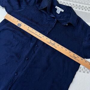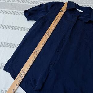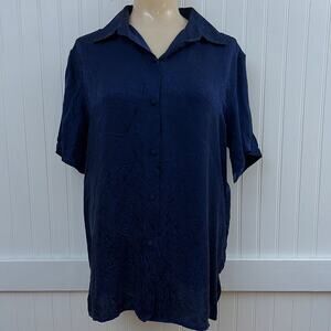 Anna Frank Vintage 100% Silk Button Up Blouse Navy Monochromatic Zebra Women's S