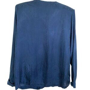 Anna & Frank Womens Vintage Paisley Textured Navy Blue Button-Up Silk Blouse M
