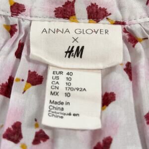 Anna Glover H&M 10 Womens Pink Floral Print Button Front Blouse Gathered Waist