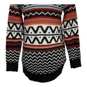 Anna Grace Small Chunky Knit Pullover Sweater Multicolor Aztec Stripe Cozy Fall