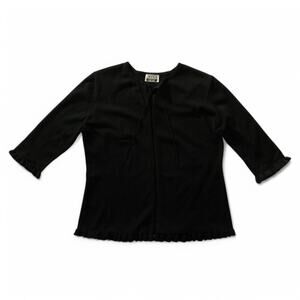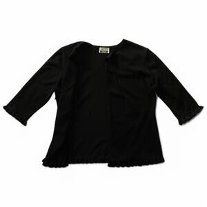Anna Gray Sweater Open Front with 3/4 Sleeves Black Ruffle Trim 38 Inch Bust
