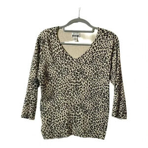 Keywords: Peter Nygard, women's blouse, size large, multicolor, animal print, silk blend, V-neck, 3/4 sleeve, dry clean, pre-owned.