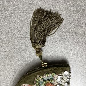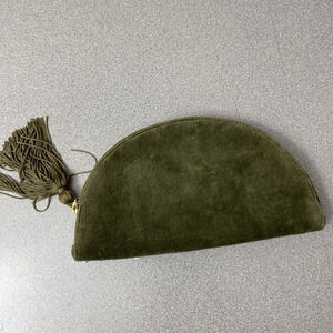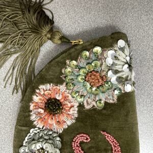 Anna Harlow Russo Anthropologie Monogram Letter "C" Clutch Velvet Green Fringe