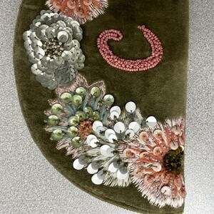 This listing is for an Anthropologie x Anna Harlow Russo Women's Embellished Floral Monogram Clutch. Crescent shape. Zip closure. Approx 9.5 in x 5.5in