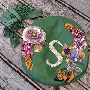 Anna Harlow Russo x Anthro Green Beaded Monogram “S” Cosmetic Accessory Pouch