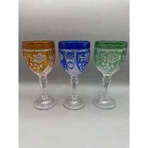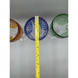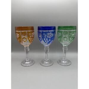 Anna Hutte Echt Bleikristall Blue, Green & Orange Crystal Wine Goblets Set 3