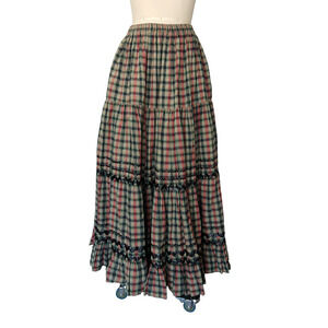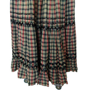 Anna Konya Vintage Plaid Maxi Skirt One Size Flannel Tiered Christmas Ric Rac