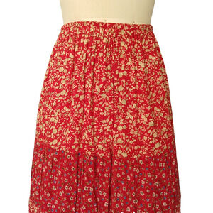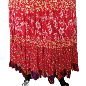 Anna Konya Vintage Red Floral Maxi Skirt One Size Tiered Hippie Bohemian