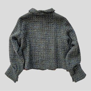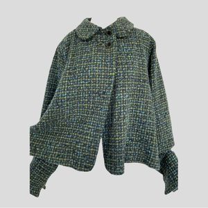 Anna Marie Rice Pita Vintage Wool Tweed Crop Blazer Jacket Blue/Green Women's 2
