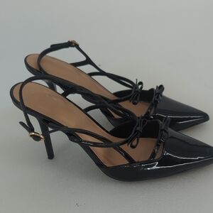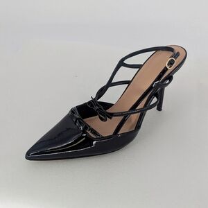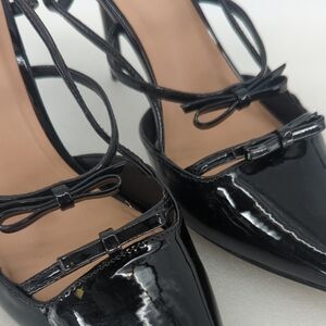 Anna Michelle Pointy Toe Bow Strappy Heels Black Size 10M preppy Business casual