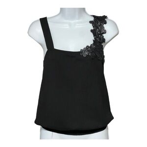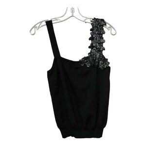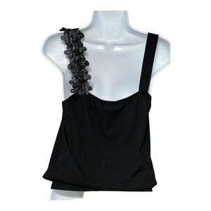 Anna Molinari Black Knit Top Women Black Lace Floral Shoulder Accent Tank Large