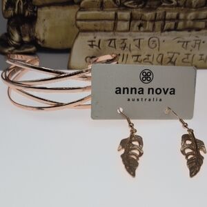 Anna Nova Rose Gold NWT Earrings Abd Boutique Minimalist Cuff Bracelet Bundle