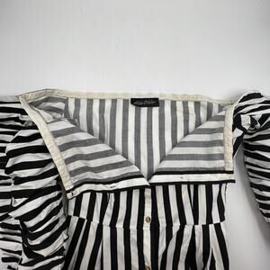 Anna October Off the Shoulder Stripe Dress Black White Midi Ruffle Sleeves