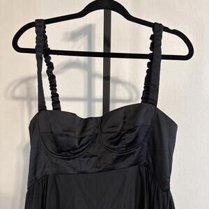 Anna October Snowdrop Bustier Ruched Strap Ruffle Hem Black Maxi Dress (Sz: LG)