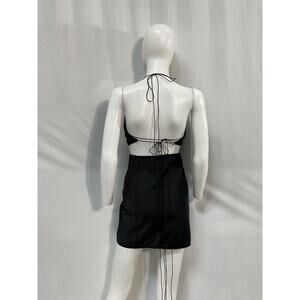 Anna October 'Vivienne' Black Polyester Mini Dress Size M: paneled and layered construction, sweetheart neck, self-tie shoulder straps, cutout at sides, self-tie fastening at open back.