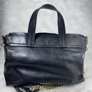 Anna Paola Italian Leather Woven Flap Satchel Handbag