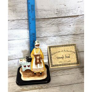 Please review the images carefully. While these figurines have been displayed in a protective case, one has minor sun damage on the back. This can be restored, but it is not noticeable when displayed, as the focus remains on the front. With minimal cleaning, these pieces will look like new and remain conversation pieces for years to come. Each sculpture originally retailed for $325.