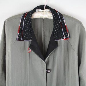 Anna Polan Sage Green Black White Polka Dot Trim Lightweight Jacket Blazer L