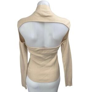 Anna Rae Women's Beige Tan Ribbed Knit Mockneck Cutout Long Sleeve Sweater Top M
