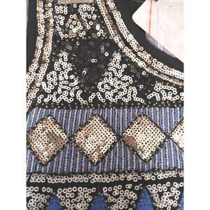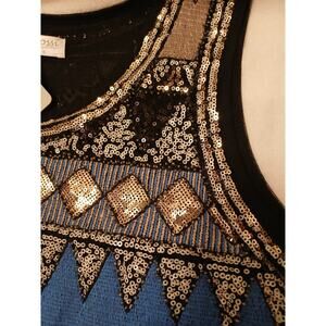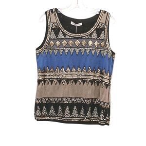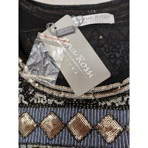Anna Rossi Couture Sequins Top Sz M/L Sleveless Lined Silver Black Blue Luxury