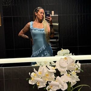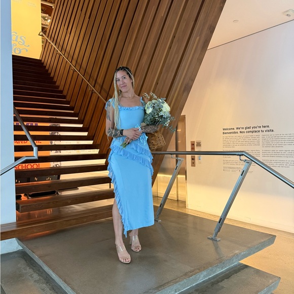 Step out in style with this elegant blue ruffle dress. Perfect for any occasion, this dress offers a flattering fit and a touch of sophistication.