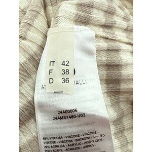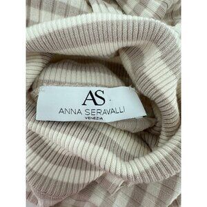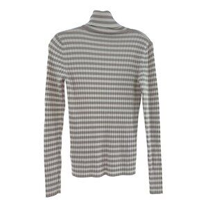 Anna Seravalli Ribbed Checkered Beige & White Turtleneck Sweater Medium