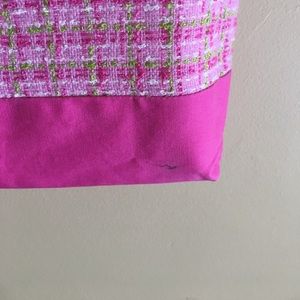 Condition: Preowned, pen mark on the bottom back of bag on the multi colored side. Slight stain at the top on the back on the bag on the white side.