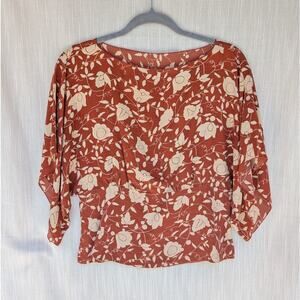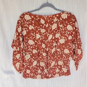 Anna Sui Copper/Cream Print Kimono-style 100% Silk Blouse