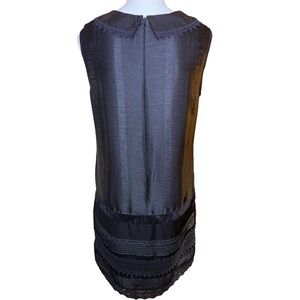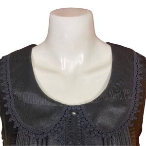 Anna Sui for target Belted Black Shift Dress.Sleeveless with peter pan collar neckline. Button and pintuck detailing down the front with a velvet "belt" at dropwaist. Accented with large buckle. Zipper closure. Marked Size 13