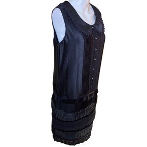 Anna Sui for target Belted Black Shift Dress.Sleeveless with peter pan collar neckline. Button and pintuck detailing down the front with a velvet "belt" at dropwaist. Accented with large buckle. Zipper closure. Marked Size 13