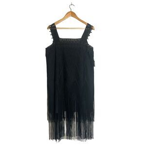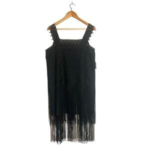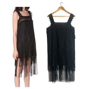 Anna Sui Gatsby Lace Paneled Crochet Glitter Fringe Flapper Dress Size 8 NWT