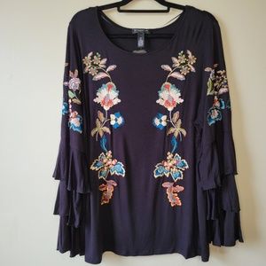 Anna Sui Loves INC International Concepts Embroidered Bell Sleeve Top Size 2XL