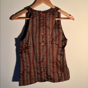 Authentic Anna Sui mod style sleeveless top. Fun and stylish print with sexy back detail
