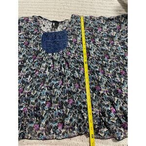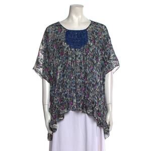Anna Sui Oversized Silk Chiffon Blend Floral Blouse Top Women's Size Medium Made in USA Blue