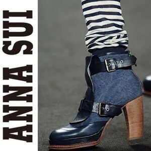 Anna Sui AS SEEN IN NYC Fashion Week RTW Spring 2007 Denim and Leather Ankle Booties -40.5 fits like 8.5-9 US 4.5” heels. Quality leather bootie. Minor fading due to age and wear on sole. Please see pictures for wear.