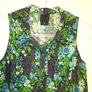 A true Anna Sui statement piece blending feminine 60s charm with her signature eclectic flair. The floral silk-linen blend and sculpted petal details make this romper a rare find for collectors and vintage lovers alike—perfect for the bold, preppy, and romantic dresser.