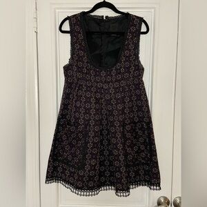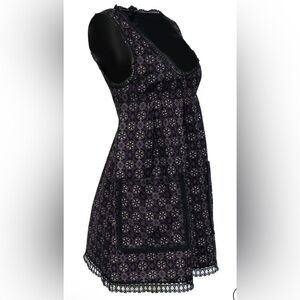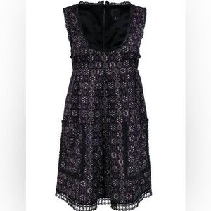 Anna Sui Silk Cotton Brocade Black Purple Lace Dress Grunge Vintage Designer