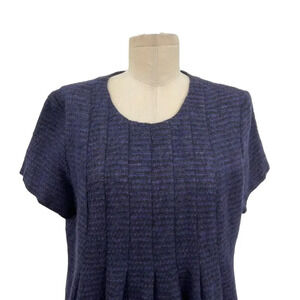 Anna Sui Swing Mod Dress Tweed Boucle Knit Short Sleeve Purple Black Size 12