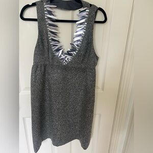 Anna sui target 20th anniversary gray tweed metallic plunge neck dress small. Neckline has large sequins. Open back with halter style neck. Invisible back zipper and side pockets. New with tags.