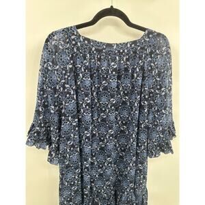 Anna Sui Uniqlo Flutter Sleeve Tiered Blue Floral Printed Dress Size Large